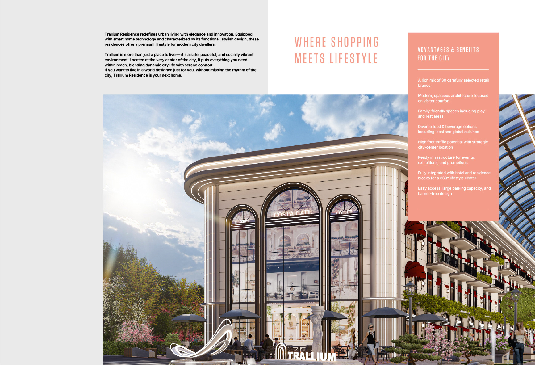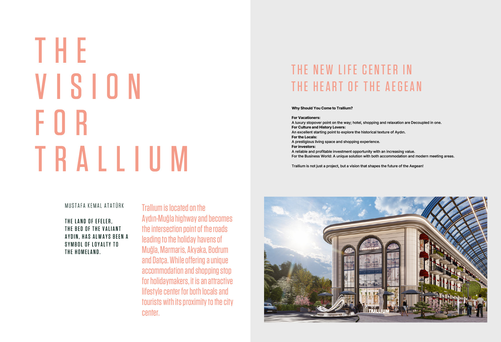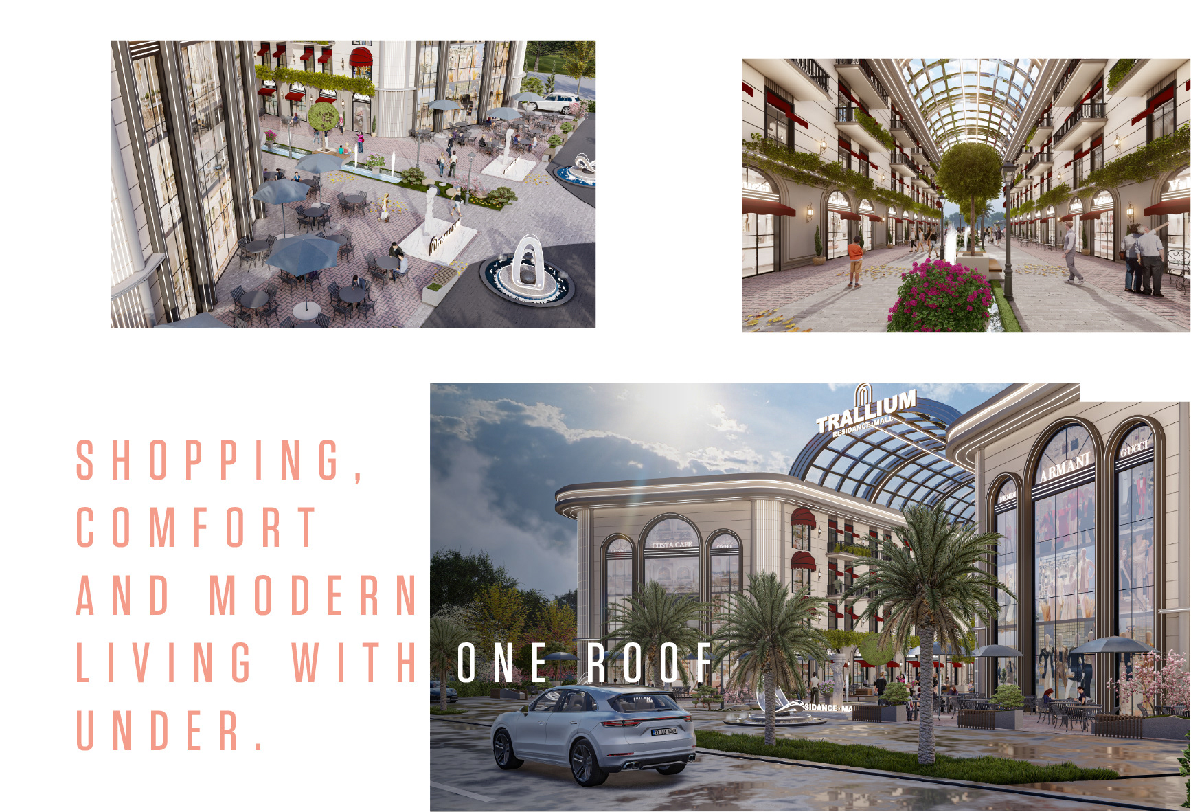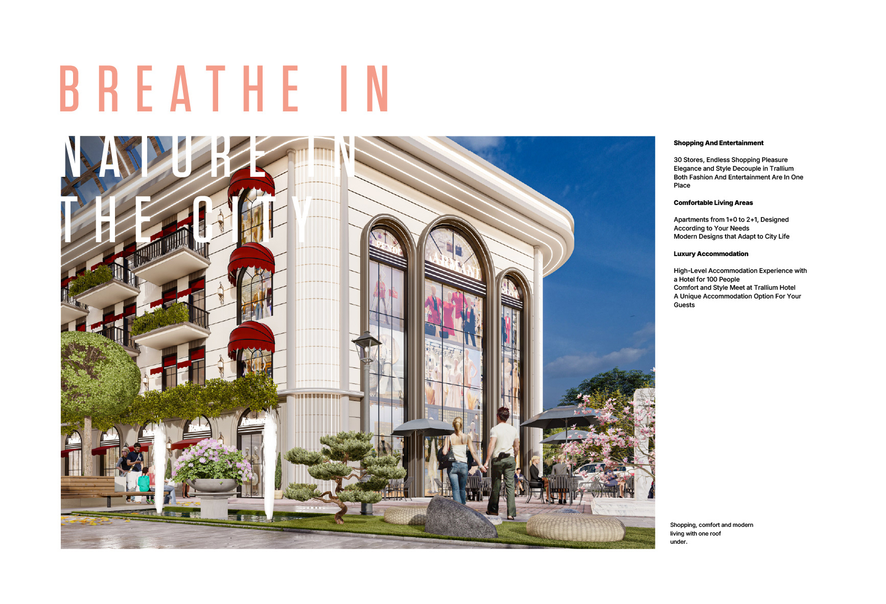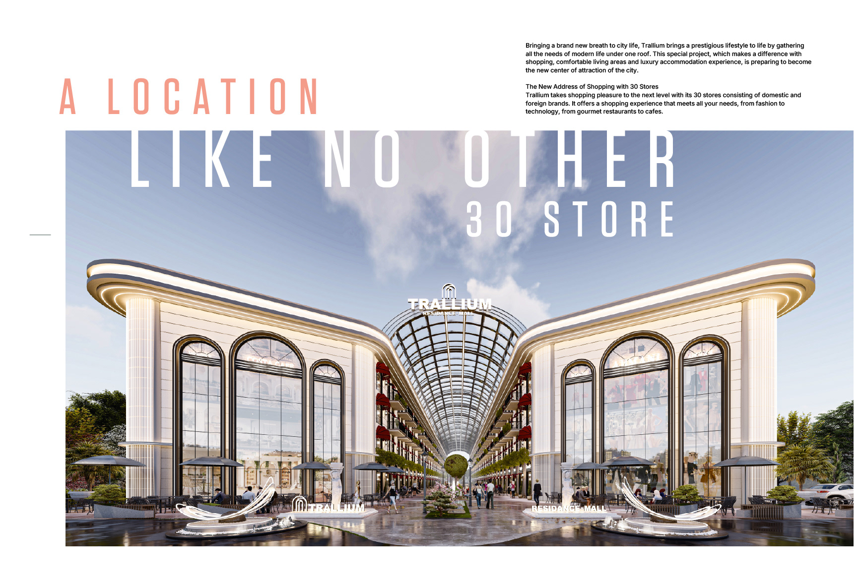 Shopping And Entertainment • 30 Stores, Endless Shopping Pleasure • Elegance and Style Decouple in Trallium Both Fashion And Entertainment Are In One Place • Comfortable Living Areas • Apartments from 1+0 to 2+1, Designed According to Your Needs • Modern Designs that Adapt to City Life • Luxury Accommodation • High-Level Accommodation Experience with a Hotel for 100 People Comfort and Style Meet at Trallium Hotel • A Unique Accommodation Option For Your Guests